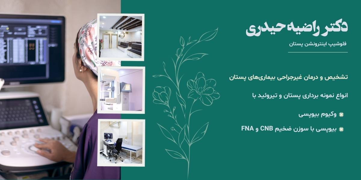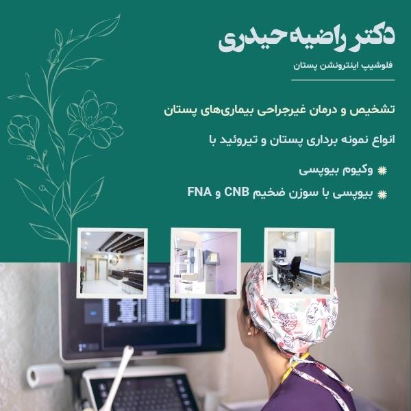 دکتر راضیه حیدری، متخصص رادیولوژی و تصویربرداری پزشکی، دارای بورد تخصصی و رتبه برتر آزمون تخصص، فلوشیپ اینترونشن پستان از دانشگاه علوم پزشکی تهران و سابقه عضویت در هیئت علمی دانشگاه، با تمرکز بر تشخیص و درمان غیرجراحی بیماریهای پستان فعالیت میکند.